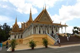 Day 13: PHNOM PENH fullday tour (by A/C car, bicycle) After breakfast, it would be a good time to have a glimpse of Phnom Penh visit to the Royal Palace compound build in 1866 by King Norodom, is the most conspicuous feature and also one of impressive colorful Khmer-style Palaces. Nearside the Royal Palace is Silver Pagoda (The Emerald Buddha temple), display plenty of Buddha Statues that were decorated and made by diamond, emerald, gold and silver. Then proceed to the National Museum, the distinctive red building with a beautiful Khmer architecture was build since 1917 and contains more than 5000 art objects made of sandstone, bronze, silver, Copper, wood and others. They are really the cultural treasure of Cambodian. Afternoon visit the Wat Phnom Daun Penh - the name of a pagoda, was built by lady Daun Penh in 1372 on a little hill, Legend has it that after a particularly heavy flood, a wealthy Khmer woman named Daun Penh found a tree on the banks of the Mekong with four statues of Buddha hidden inside. Today Wat Phnom remains the highest artificial hill in Phnom Penh and the center of many forms of leisure activity. Then continue to Independent Monument which was constructed in 1954 after Cambodian took their country back from French colony. Finally, visit and shopping at Toul Tompong Market (called Russian Market) that you will feel a bustling daily life of local people with Cambodian’s special character through local specialities, their houses and their face. Overnight in Phnom Penh. (B)