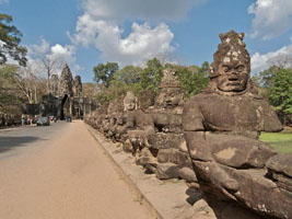 A full day to discover Siem Reap. Firstly, you will visit Angkor Thom (the Great City) including the Southern Gate, famous Bayon temple (12th century in the center of city remains one the most enigmatic temples of the Angkor group composed of 54 gothic towers decorated with 216 smiling faces of Avalokitesvara; Baphuon temple lying just to the north of Bayon a pyramidal representation of mythical Mont Meru; Terrasse of Elephants used as a giant reviewing stand for public ceremonies and served as a base for the king’s grand audience hall ; Terrace of the Leper King a plateform 7m high, on the top stands a nude though sexless statue; Phimean Akas temple means “Celestial Palace”, dedicated to Hinduism. Afternoon, you will visit the wonderful Angkor Wat - one of the seven greatest architectural wonders of the world, as a temple and mausoleum for King Suryavarman II at the peak of the Khmer empire in the first half of 12th, Angkor Wat is probably the best-preserved of the Angkorean temples, with a central tower surrounded by four smaller towers. The central monument represents the mythical Mount Meru, the holy mountain at the centre of the universe, which was home to the Hindu God Vishnu. The whole complex covers 81 hectares, a rectangular wall measuring 1025 meters by 800 meters borders the inner edge of the moat, and temple's greatest sculptural treasure is its 2 km-long bas-reliefs around the walls... In the late afternoon coming to the Phnom Bakheng temple, is the first temple in Angkor region build by the Yacovarman I King in the first of 9th century, located on a slope gently hill where thousands tourist are grouping on the hilltop to catch a memorable lifetime when viewing the marvellous sunset on Angkor Wat and on the other sites. Overnight in Siem Reap. (B)