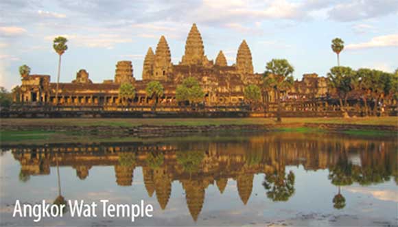 dedicated to Hinduism. Afternoon, you will visit the wonderful Angkor Wat - one of the seven greatest architectural wonders of the world, as a temple and mausoleum for King Suryavarman II at the peak of the Khmer empire in the first half of 12th, Angkor Wat is probably the best-preserved of the Angkorean temples, with a central tower surrounded by four smaller towers. The central monument represents the mythical Mount Meru, the holy mountain at the centre of the universe, which was home to the Hindu God Vishnu. The whole complex covers 81 hectares, a rectangular wall measuring 1025 meters by 800 meters borders the inner edge of the moat, and temple's greatest sculptural treasure is its 2 km-long bas-reliefs around the walls... In the late afternoon coming to the Phnom Bakheng temple, is the first temple in Angkor region build by the Yacovarman I King in the first of 9th century, located on a slope gently hill where thousands tourist are grouping on the hilltop to catch a memorable lifetime when viewing the marvellous sunset on Angkor Wat and on the other sites. Overnight in Siem Reap. (B)