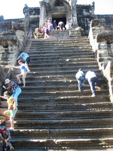 Day 2 : SIEM REAP ( by A/C car ) A full day to discover Siem Reap. Firstly, you will visit Angkor Thom (the Great City) including the Southern Gate, famous Bayon temple (12th century in the center of city remains one the most enigmatic temples of the Angkor group composed of 54 gothic towers decorated with 216 smiling faces of Avalokitesvara; Baphuon temple lying just to the north of Bayon a pyramidal representation of mythical Mont Meru; Terrasse of Elephants used as a giant reviewing stand for public ceremonies and served as a base for the king’s grand audience hall ; Terrace of the Leper King a plateform 7m high, on the top stands a nude though sexless statue; Phimean Akas temple means “Celestial Palace”, dedicated to Hinduism. Afternoon, you will visit the wonderful Angkor Wat - one of the seven greatest architectural wonders of the world, as a temple and mausoleum for King Suryavarman II at the peak of the Khmer empire in the first half of 12th, Angkor Wat is probably the best-preserved of the Angkorean temples, with a central tower surrounded by four smaller towers. The central monument represents the mythical Mount Meru, the holy mountain at the centre of the universe, which was home to the Hindu God Vishnu. The whole complex covers 81 hectares, a rectangular wall measuring 1025 meters by 800 meters borders the inner edge of the moat, and temple's greatest sculptural treasure is its 2 km-long bas-reliefs around the walls... In the late afternoon coming to the Phnom Bakheng temple, is the first temple in Angkor region build by the Yacovarman I King in the first of 9th century, located on a slope gently hill where thousands tourist are grouping on the hilltop to catch a memorable lifetime when viewing the marvellous sunset on Angkor Wat and on the other sites. Overnight in Siem Reap. (B)