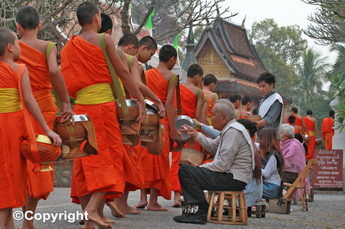 Day 2: LUANG PRABANG - PAK OU (By Car 60km, Boat) After breakfast, we enjoy an excursion by boat for along the Mekong River to visit the holly caves of Pak Ou: Tham Ting and Tham Phoum. A repository for old or damaged Buddha images that once graced household shrines, the caves of Tham Ting and Tham Phoum have become highly venerated sanctuaries. During Lao New Year boatloads of Luang Prabang residents make the 25km pilgrimage up the Mekong River to the caves to wash the Buddha images and make merit, just opposite Mekong river’s bank is the village of Ban Xang Hai. Though for centuries the village made its living by crafting stoneware jars, more recently it has become famous for brewing particularly fiendish liquor, made from fermented sticky rice, called 'lao-lao.' In the afternoon, you visit National Museum at the former royal Palace which displays a lovely collection of the artifacts reflecting the richness of Lao cultural dating from the days of the early kings right through the last sovereign. Then, you will visit some royal temples such as: Wat Xieng Thong with its roofs sweeping low to the ground, which represent the classical architecture of Luang Prabang temple; Heading out of this area, we explore some other major sights including the impressive stupa of Wat Visoun, inside you will see the stupa which is know as that Makmo because the form is like the half of Watermelon, the temple structures are decorated in various ways with gilded stuccoes and doorways. You also have time to enjoy shopping at the central market and strolling around the shopping area, take your time to enjoy a busy market day, communicating with the local sales and all sorts of their products. It’s quite a sight to see, to give somewhat a picture of Lao social living. Back to your hotel and free at leisure at night. Overnight in Luang Prabang. (B)