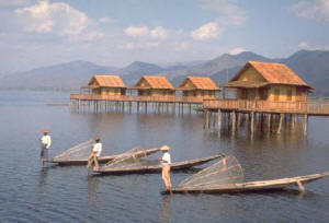 Day 9: Inle Lake (B,L,D) After breakfast visit Inle Lake by boat. Traveling on Inle Lake is an exhilarating experience for nature lovers and a chance to observe the unique traditions of the Intha people like the leg-rowing fishermen and the floating gardens built up from strips of water hyacinth and mud and anchored to the bottom with bamboo poles. Visit In Dein, a newly opened area with old stupas mysteriously covered by vegetation. The tour also features Ywama, a floating village and the lake’s downtown where a floating market is held every five days, Phaung Daw Oo Pagoda, the main shrine on the lake, and local handicraft industries. Proceed to the famous Resort hotel, built on stilts in the middle of the lake to experience the spectacular leg-rowing boat race, organized especially by Nature Dream. In the afternoon, proceed to the floating Intha village where the initiation ceremony called Shin Pyu in Burmese will be organized the next morning. The group will be split into smaller groups to meet their "Godsons", the young boys they are sponsoring, in their family homes. Return to the hotel by late afternoon. In the evening enjoy a Shan party by the lakeside. Overnight at Inle Lake.